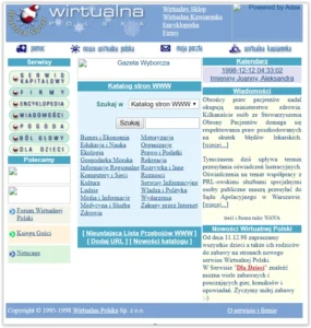 Bardzo ważnym rokiem dla rozwoju internetu w Polsce był 1995, kiedy to przeprowadzono pierwsze badania społeczności internetowej. Z danych na koniec 1995 roku wynikało, że liczba internautów wynosiła w Polsce pół miliona, z czego zdecydowaną większość stanowili mężczyźni. Początkowo młodzież i osoby starsze nie miały dostępu do sieci. Kolejnym istotnym krokiem, który przyczynił się do popularyzacji internetu było założenie przez Leszka Bogdanowicza w 1995 roku portalu Wirtualna Polska. Był to niezwykle nowatorski pomysł, jednakże bardzo udany. W 1996 roku WP cieszyło się, jak na tamte czasy, bardzo dużą popularnością. Katalog WP miał wtedy około 10 tysięcy odsłon dziennie. Oto jak strona wyglądała w grudniu 1998 roku: