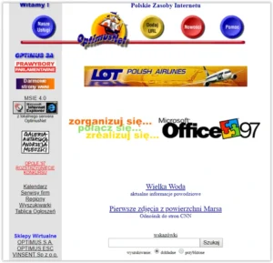 W 1996 roku powstał natomiast Onet.pl. Za opracowanie podstaw portalu odpowiadali specjaliści z Optimusa. Pierwsza nazwa katalogu brzmiała Polskie Zasoby Internetu. Od tamtej pory aż do dziś, WP.pl i Onet.pl intensywnie ze sobą rywalizują. Oto, jak wyglądała strona Onet.pl w sierpniu 1997 roku: